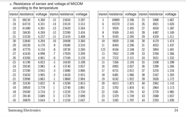 - He comprobado a la entrada de la placa los valores de los 3 sensores (refrigerador, congelador y evaporador) y coinciden con las tablas para sensores Samsung 5K ... Dando por buena diferencia de 1 ó 2 grados todo parece OK.