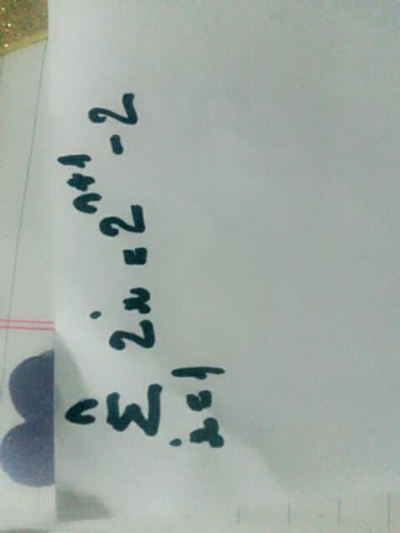 $$\begin{align}&\sum_{i=1}^{n}2i=^? 2^{n+1}-2\\&Caso\ base\ (n=1)\\&\sum_{i=1}^{1}2i=2\cdot 1 = 2\\&2^{1+1}-2=2^2-2=2 \\&\text{Se verifica el caso base}\\&P(n) \Rightarrow^? P(n+1)\\&\bigg(\sum_{i=1}^{n}2i= 2^{n+1}-2\bigg) \Rightarrow^? \bigg(\sum_{i=1}^{n+1}2i= 2^{n+2}-2\bigg)\\&\sum_{i=1}^{n+1}2i=\sum_{i=1}^{n}2i + 2(n+1)= (H.I.)\\&=2^{n+1}-2+2(n+1)=2^{n+1}-2+2n+2=\\&2^{n+1}+2n \text{ Por acá parece que no llegamos a nada, de hecho creo que tenés un error en el planteo, el mismo es:}\\&\sum_{i=1}^{n}2^i=^? 2^{n+1}-2\\&\text{Dejé todo lo que hice antes, simplemente para que lo tengas y para que veas que no siempre los razonamientos}\\&\text{son directos, muchas veces pasa probás con una solución y cuando ves que no llegás a nada, entonces tenés que buscar}\\&\text{otros caminos...}\\&\text{Sigamos ahora...Caso base (n=1)}\\&\sum_{i=1}^{1}2^i=2^1=2\\& 2^{1+1}-2=2^2-2=2\\&\text{Vale el caso base}\\&P(n) \Rightarrow^? P(n+1)\\&\bigg(\sum_{i=1}^{n}2^i= 2^{n+1}-2\bigg) \Rightarrow^? \bigg(\sum_{i=1}^{n+1}2^i= 2^{n+2}-2\bigg)\\&\sum_{i=1}^{n+1}2^i = \sum_{i=1}^{n}2^i + 2^{n+1} = (H.I.)\\&=2^{n+1}-2 + 2^{n+1} = 2\cdot 2^{n+1}-2 = 2^{n+2}-2 \text{ Que es lo que queríamos demostrar}\\&\end{align}$$Salu2
