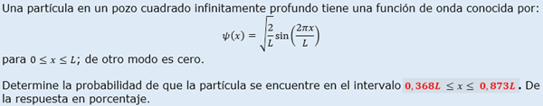 Una partícula en un pozo cuadrado infinitamente profundo tiene una función de onda conocida por