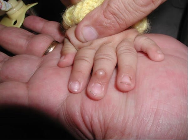 El paciente también puede tener nodos de Heberden. Estos son protuberancias formadas por espolones de hueso que surgen de la articulación debido a la OA.