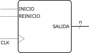 Diseñar un cronómetro de cuenta regresiva que cuente desde 59 hasta 0. El cronómetro contará con una entrada INICIO y otra de REINICIO, tal como se observa en la siguiente figura.