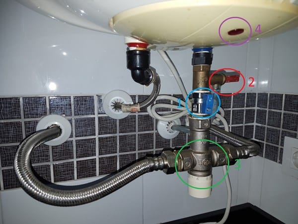 Supongo que el número 1 (azul), es una llave de paso para cortar la entrada de agua fría.