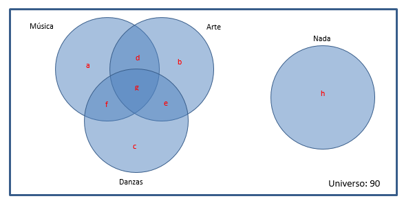 Más allá del "detalle" anterior, en función a los datos obtenidos la respuesta es que al taller de música asistieron a + d + f + g = 69 + 12 + 13 + 4 = 98 (por supuesto que este resultado es absurdo, ya que solo había 90 personas inscriptas, pero esto pasa por los valores negativos obtenidos antes)...