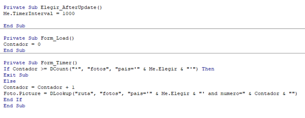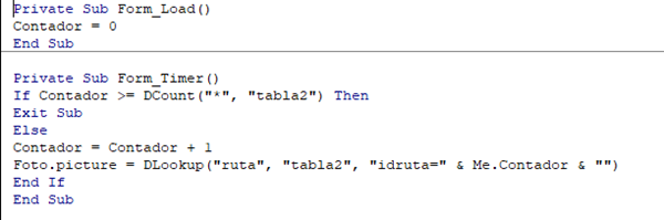 Tengo una tabla en Access con un campo que es la dirección en mi PC de varias imágenes que tengo guardadas y que quisiera que fueran apareciendo sucesivamente en un formulario que tengo con su correspondiente control imagen.