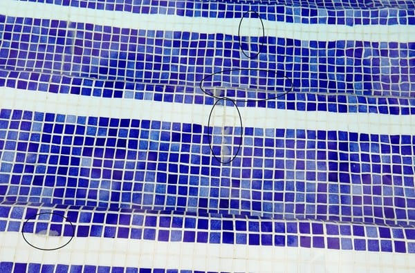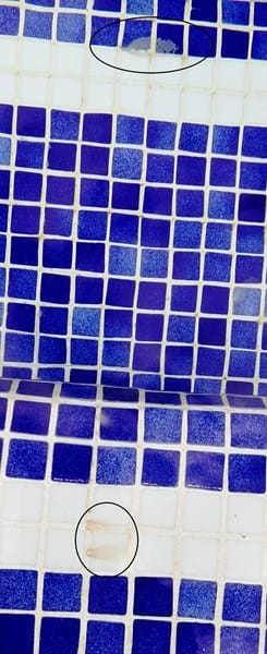 Tengo una psicina de gresite desde el verano pasado y me han salido unas manchas blanquecinas en los escalones que no sabemos de lo que son ni como quitarlos . Creíamos que eran calcificaciones porque nos subió el pH al acabarse el minorizante pero parece que no lo son. Según varias opiniones que hemos pedido nos dicen que puede ser o bien un defecto del gresite o bien que el cemento se ha transferido al gresite al asentarse la obra. Os pongo unas fotos para ver si alguien sabe lo que pueden ser y nos puede decir como quitarlas(la piscina es de cloración salina)