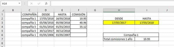 Por ahora sumo las comisiones por cada compañía con esta fórmula: