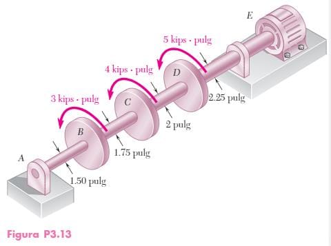 Bajo condiciones normales de operación, el motor eléctrico ejerce un par de torsión de 12 kips*pulg en E. Si se sabe que cada eje es sólido, determine el máximo esfuerzo cortante...