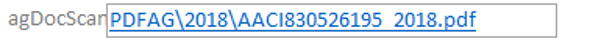 Donde agDocScan es el campo hipervinculo y Texto24 donde pongo la ruta.