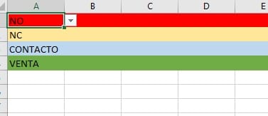 Necesito que cuando se elija cualquier valor del desplegable a lo largo de toda la columna A, cada fila dependiendo del valor que se elija cambie de color, Algo así