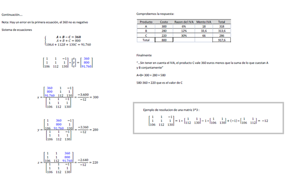 - Plantear un sistema de ecuaciones para calcular la cantidad, sin IVA, que cuesta cada producto.