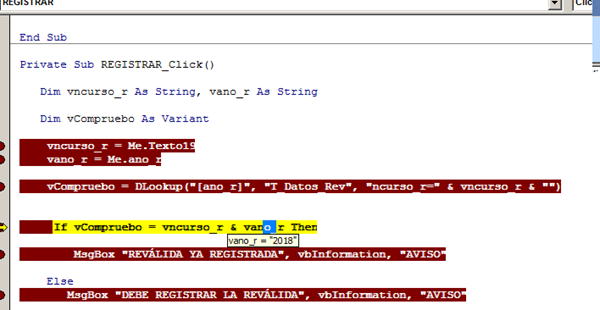 If DCount("*", "T_Datos_Rev", "ncurso_r=" & Me.Texto19 & " AND ano_r=" & Me.ano_r)>0 Then