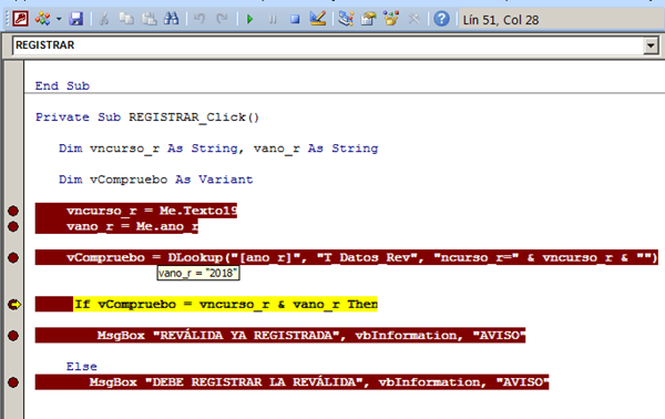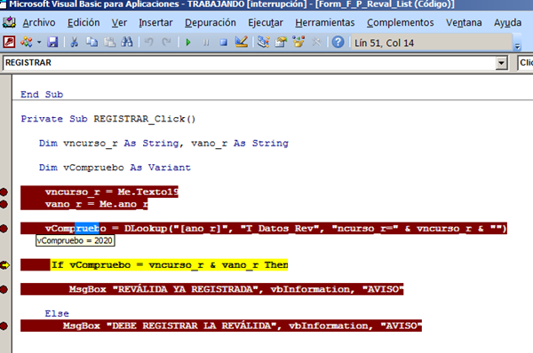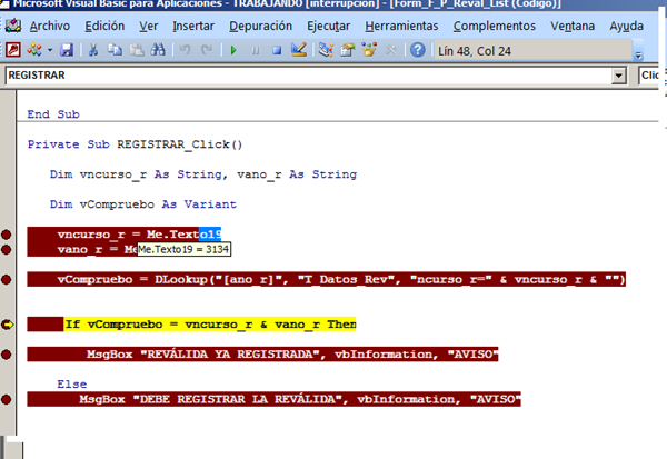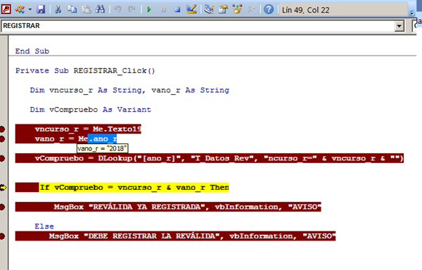 MsgBox "REVÁLIDA YA REGISTRADA", vbInformation, "AVISO"