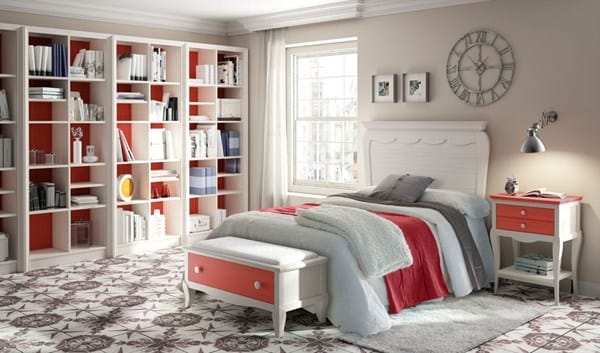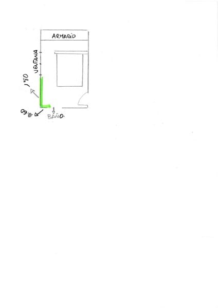 Adjunto plano de la habitación principal, entre el armario y la cama hay un cabezal a modo de separación, me gustaría poder decorar de alguna manera el espacio marcado en color verde, ya que la habitación está pintada en color blanco y veo demasiado blanco, si es posible me gustaría que también me sirviera para poder colocar algún adorno o libros, el mobiliario de la habitación es de líneas muy modernas.