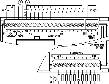 Salida elegida al borne A1 del contactor trifásico. Borne A2 del mismo a tierra general ( terminales( 3 + 5) contando de izquierda a derecha sobre la bornera de entradas). Con esto tendrás la tensión interna propia del PLC de 24 Volts sobre la bobina del contactor. O sea necesitarías un contactor trifásico con bobina de 24 volts c.c. Tené en cuenta que la corriente que maneja este tipo de salida ( Ry) en estas aplicaciones no conviene que te exceda de 0.5 A.
