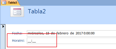 Tengo un formulario en Access vinculado a una tabla, en uno de sus campos quiero insertar una hora y que se guarde en la tabla como tal.