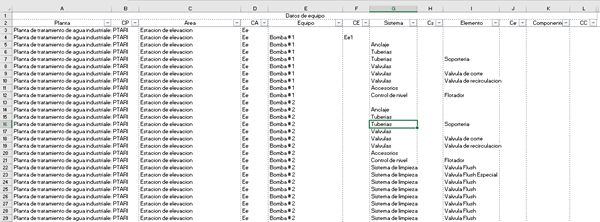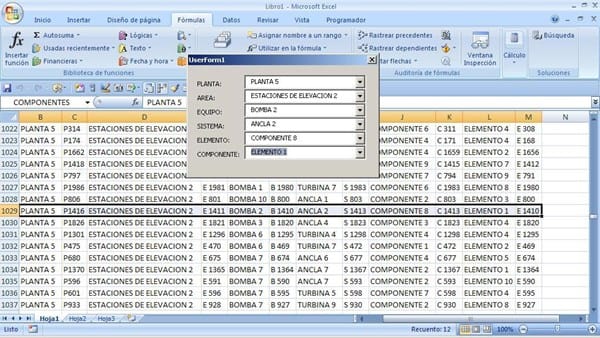 Estoy haciendo un formulario para encontrar características de equipos, para ello he decidido agruparlos en varias categorías, área, equipo, sistema, componente y elemento de esta manera es más fácil encontrar un elemento y la información que se necesita de él. He elaborado una sola hoja donde cada columna corresponde a una categoría de las mencionadas anteriormente. Para el caso del primer filtro he usado el siguiente código con el cual cargo la información sin repetir datos