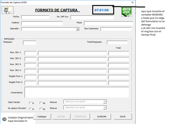 Me gustaría que el contador en vez de mostrar la hora, me mostrara el tiempo que esta abierto el formulario hasta que se cierre y me mostrara un msgbox que me diga cuanto fue el tiempo de captura