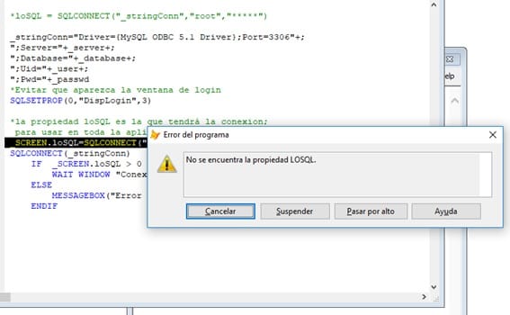 Error en FoxPro no se encuentra la propiedad losql