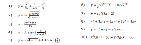 Tengo todos esos ejercicios y quisiera saber si hay un orden que se debe seguir para resolverlos por ejemplo el primero debo transformar las raíces a potencias, ¿luego reducir términos y tratar de pasarlo a lineal y luego derivar y luego sumar y restar? O transformar las raíces a potencias, usar la fórmula de división de derivadas que dice la primera derivada * el segundo termino sin derivar y todo eso. O usar la regla de la cadena (¿qué aun no la entiendo mucho)?