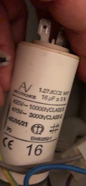 Resulta que mi lavadora con ropa no gira el tambor hace el amago pero no termina de dar la vuelta, centrifugar digamos arranca pero si tiene poca ropa y ambas cosas lavar y centrifugar las hace cuando esta vacía girando el tambor sin problemas, el caso es que he leído que puede ser el condensador pero no se cual comprar el modelo de lavadora es bluesky blf 516 th desmoste la parte superior e hice unas fotos de esta pero no quisiera comprar el que no le corresponda, los datos que viene son estos: av 1.27.6cc2