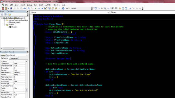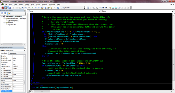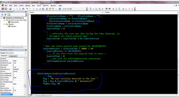 En seguida pegue el otro código la Sub (IdleTimeDetected), ya que como es una Sub debe de ir en el mismo modulo (Form1)