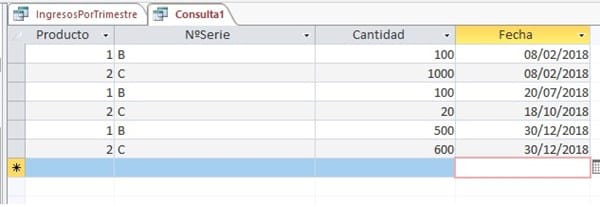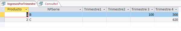 Lo que quiero es calcular los totales por trimestre, por lo que utilizo consulta de referencias cruzadas. La creo así: