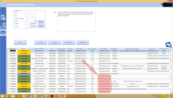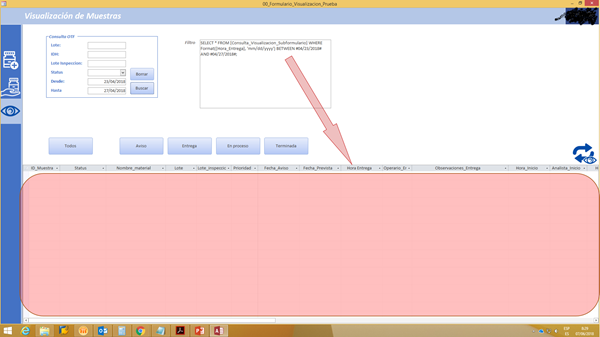 Private Sub cmd_query_Click() 'Defino variables Dim vLote As String Dim vLoteInspeccion As String Dim vIDH As String Dim vStatus As Integer Dim vFechaEntrega As Variant Dim vLargo As Integer Dim miFiltro As String 'Funcion Nz (Define un valor como una cosa cuando no es null, o como otra cuando si que lo es) ' (Ej: vLote tiene el valor de Me.qryLote cuando este no sea null, o "" cuando si lo sea) vLote = Nz(Me.qryLote.Value, "") vLoteInspeccion = Nz(Me.qryLoteInspeccion, "") vIDH = Nz(Me.qryIDH, "") vFechaEntrega = Nz(Me.qryFechaEntrega, "") vStatus = Nz(Me.qryStatus, 0) 'Comenzamos con el filtro vacio miFiltro = "" 'Añadimos las partes de la sentencia SQL según si el campo en concreto es null o no. (OJO al espacio antes de AND) If vLote <> "" Then miFiltro = miFiltro & " AND [Lote]='" & vLote & "'" End If If vIDH <> "" Then miFiltro = miFiltro & " AND [IDH]='" & vIDH & "'" End If If vLoteInspeccion <> "" Then miFiltro = miFiltro & " AND [Lote_Inspeccion]= & vLoteInspeccion & " End If If vStatus <> 0 Then miFiltro = miFiltro & " AND [Status]= " & vStatus & "" End If If vFechaEntrega <> "" Then miFiltro = miFiltro & " AND [Fecha_Entrega]= #" & Format(vFechaEntrega, "dd/mm/yyyy") & "#" End If vLargo = Len(miFiltro) '(Cuenta los caracteres de miFiltro) If vLargo <> 0 Then '(Si miFiltro no tiene 0 caracteres, es decir, si existe, entonces eliminamos los 4 primeros, que corresponden al primer " AND") miFiltro = Right(miFiltro, vLargo - 4) '(Con miFiltro ya construido, puedo crear el Filtro por SQL del que se alimenta el subform) Filtro = "SELECT * FROM [Consulta_Visualizacion_Subformulario] WHERE" & miFiltro & ";" Me.Formulario_Visualizacion_Subformulario.Form.RecordSource = Filtro End If End Sub