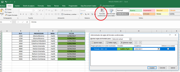En la colummna "D" Fechas, necesito busque la más reciente y la pinte, salte al siguiente rango busque la más actual y la pinte, son muchos registros, en definitiva cada proveedor quedara con la fecha más actual pintado de igual color. Adjunto tabla: