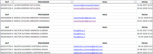 Tengo datos en columnas y filas separadas por líneas según el nombre del proveedor: