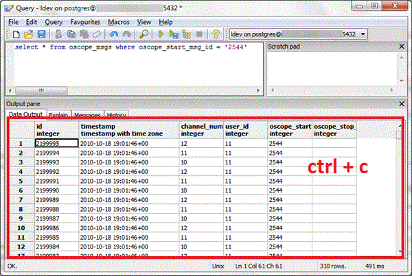 Luego de ejecutar una consulta en pg admin del tipo select * from table where -----