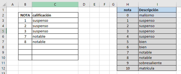 Función SI. Duda en una conversión de nota numérica a calificación