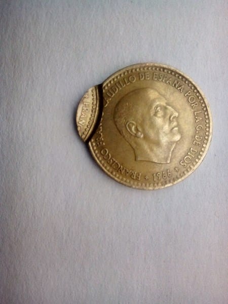 Tengo una peseta del año 1966 con una rebaba de acuñación. Tiene una protuberancia de la acuñación.