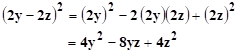 Cual es es resultado de (2y-2z)²