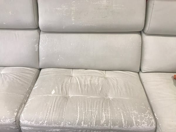 En primer lugar, lamentamos lo que ha ocurrido con tu sofá. Desde nuestro punto de vista, y por lo que se aprecia en las fotografías, el tapizado de tu sofá no parece ser piel natural de vacuno. Parece más bien un tapizado de piel sintética, de hecho en las fotografías se ve que comienza a aflorar la capa inferior del material, que se conoce como soporte, y que se aprecia que es de material textil. Existen diversas calidades de piel sintética, pero nunca pueden clasificarse como piel auténtica. Lamentablemente, nos han llegado muchos clientes en tu misma situación debido a una mala praxis por parte de la persona que se lo vendió. En Soffing nunca hemos apostado por la piel sintética como material de tapizado, sobre todos en ambientes de hogar, pues creemos que el comportamiento con el paso del tiempo no es el esperado. Es cierto que existen tapizados sintéticos de muy alta calidad, pero estos, por su composición, suelen ser igual o más caros que la piel y están diseñados principalmente para su uso en entornos sanitarios o instalaciones. Esperamos haberte ayudado.