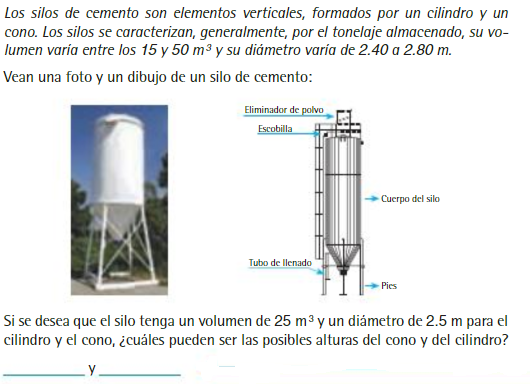 Al observar el diseño de un silo, notas que es la unión de un cono y un cilindro. Sin embargo, independientemente de la altura de cualquiera de ellos deben tener el mismo radio para poder ensamblar.