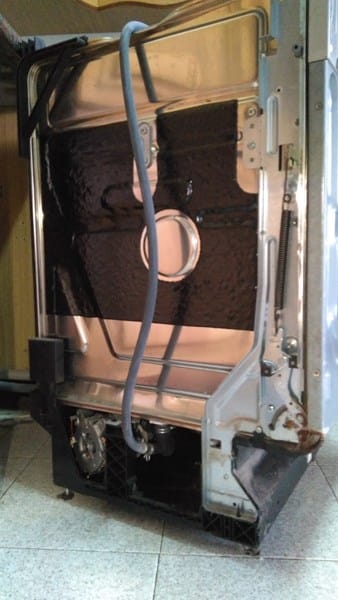 Cuando estoy haciendo pruebas con el lavavajillas, siempre las hago con el lavavajillas fuera del hueco, por si acaso. Las únicas fugas que tiene por el exterior son las que le produzco yo, al dejar algún tubo mal metido tras montarlo.