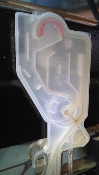He desmontado y montado la cámara de vahos pero sigue haciendo lo mismo. La junta que tiene, no tenía mala pinta pero tenía una zona blanquecina, como si fuera cal. ¿Podría ser consecuencia de la fuga? Y si no es de la junta, ¿Puede ser la cámara de vahos? A simple vista no parece que un simple depósito de plástico se puede romper, ¿pero tendrá algún tipo de válvula o algo que pueda fallar?