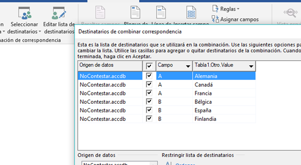 Convertir en documento Word un campo multivalor obtenido por combinación de correspondencia desde Access