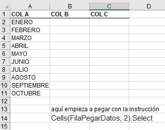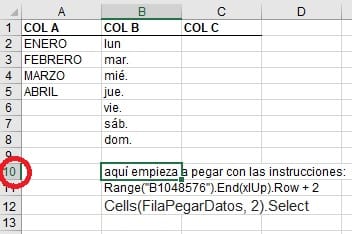 Pegar datos en la ultima fila vacía, pero desde la columna B