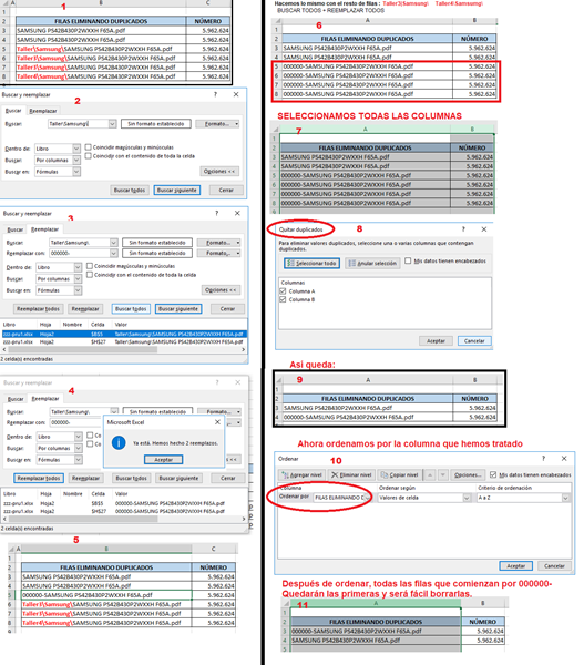 Por cierto, lo que dices de ordenar las filas y así te quedan arriba todas que comienzan por la cadena "000000-" es lo que te dije en el último paso de esa imagen, el paso 10.