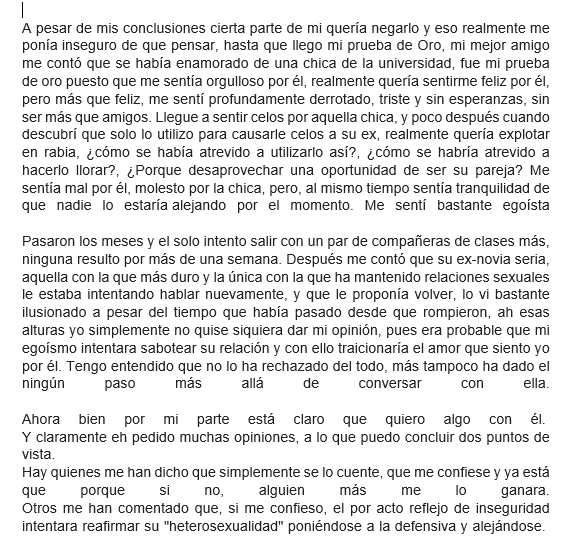 De antemano una disculpa a todos aquellos lectores por haberles puesto mi pregunta en formato de imagen, pero por la extensión del texto la plataforma no me lo permitía. Y muchas gracias a todas aquellas personas que me brinden su ayuda a pesar del abundante choro mareador