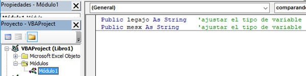 Debes declarar las variables que vas a utilizar como Públicas al inicio de cualquier módulo. Ajusta al tipo de variable que asumí String.