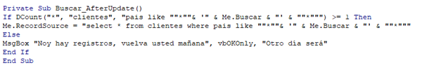 Me.RecordSource = "select * from tbl_Articulos where Articulo like ""*""&'" & Me.txtBuscaArticulo & "'&""*"""
