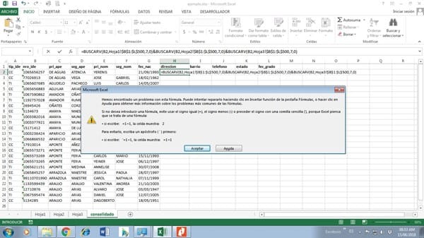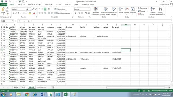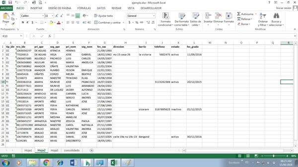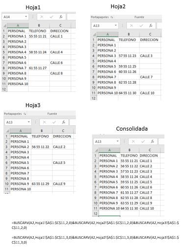 Tengo tres hojas de Excel con los mismos campos, en cada hoja esta el mismo listado de personas, y en las diferentes hojas hay personas que tienen datos de dirección y teléfono u otros campos, se quiere unir en una sola hoja sin que se repitan las personas un consolidado de información osea que se tomen los datos de todas las hojas y se unan en una sola sin repetir a las personas y quede la información consolidada