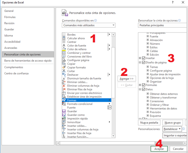 Lo que sucede es que de alguna forma se me han deshabilitado algunas opciones de Excel, les adjunto una foto para mostrarles cuales, mi pregunta es ¿Cómo puedo habilitar esas opciones?, ya revise los complementos y no tengo ninguno deshabilitado, así que no se cual es el problema