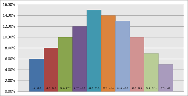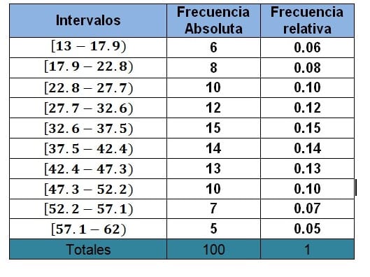 En el eje “x” deben mostrarse los intervalos y en el eje “y” las frecuencias absolutas. La altura de cada columna debe corresponder a la frecuencia absoluta del intervalo que representa.