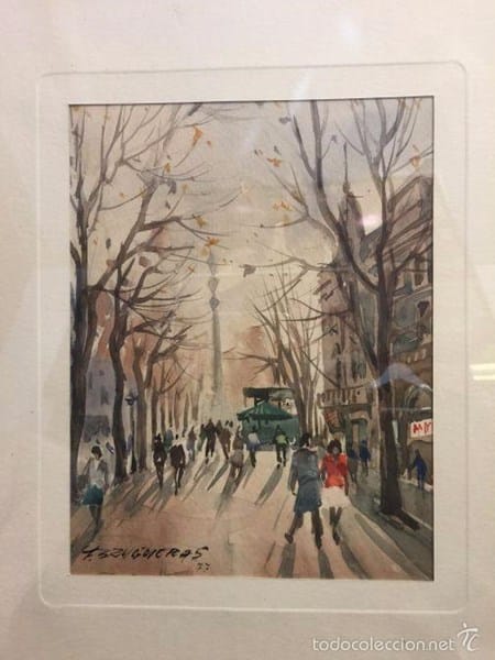 Desearía saber el valor real de esta acuarela. Firma: Felipe Brugueras Pallach
