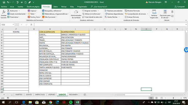 Necesito que en la columna "J" me de un listado de todas las combinaciones posible de plato + guarnición