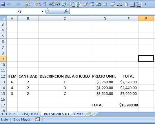 Dejo dos imágenes: Una de la hoja "BÚSQUEDA" la otra de cómo debería quedar la hoja "PRESUPUESTO"