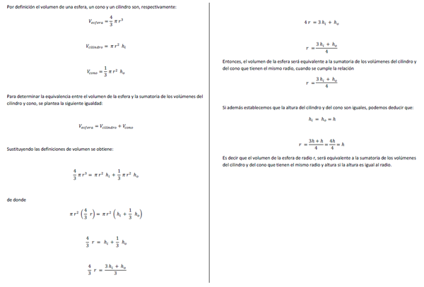 ¿La suma del los volúmenes de un cilindro y de un cono de radio r son equivalentes al volumen de una esfera del mismo radio?